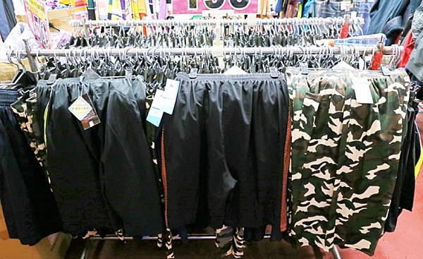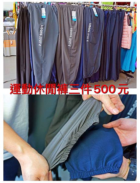 不管長褲還是短褲,尺寸齊全 男女都有,全面5折下殺,現場提供試穿,還能免費修改長度