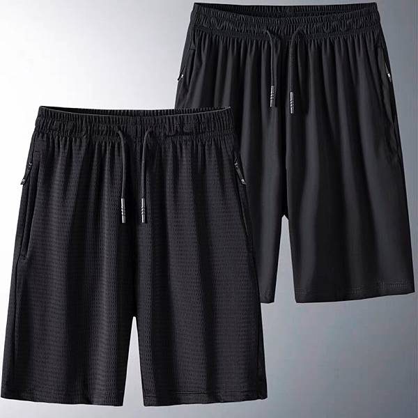運動短褲,涼感彈力,鬆緊褲頭、口袋拉鍊設計,加大尺碼也不用怕,特價三件500元