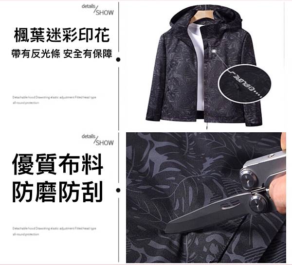 立領衝鋒外套 楓葉迷彩反光印花 騎士的好夥伴
