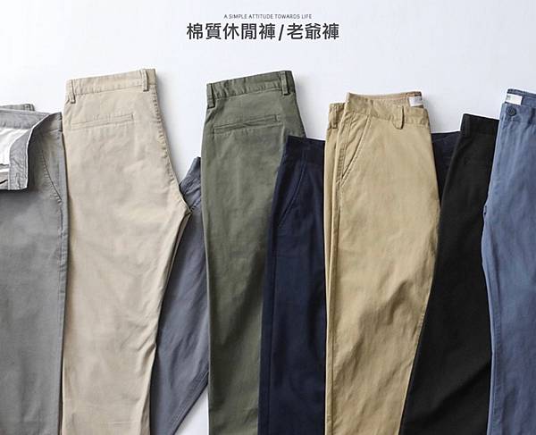 休閒工作褲,棉質或牛仔布料都有,工作或平時外出穿兩相宜